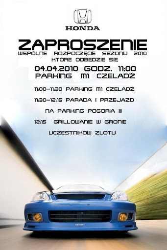 Organizowane przez [H]onda.Ślask , jeśli ktoś byłby zainteresowany Rok temu było około 150 samochodów, spotkanie przy m1, później grill/imprezka nad jeziorem, luźna atmosfera. http://lh3.ggpht.com/_JI6j4HyJzOY/S5...cy%20sezon.jpg Zdjęcia z 2k9: http://picasaweb.google.com/kosik86/...oznik05042009# |